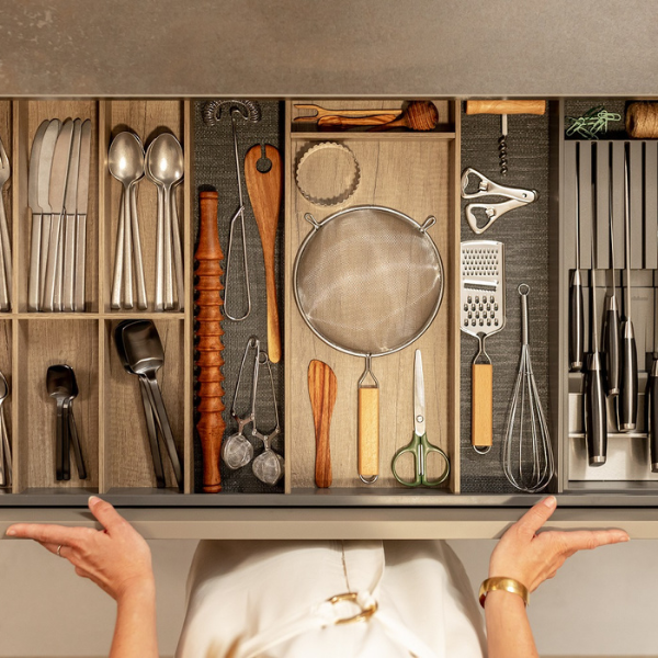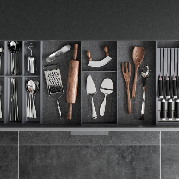 Met de Blum Orgalux fiber antislipmat voor lades blijven uw spullen keurig op hun plaats tijdens