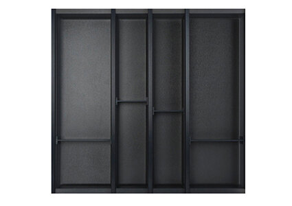 De Cuisio bestekbakken zijn elegant en van hoge kwaliteit. De bestekbakken zijn vervaardigd van transparante kunststof in de kleur zwart met zwart aluminium afdekstrip. De bestekbak is eenvoudig schoon te maken. De Cuisio bestekbak heeft een luxe uitstraling. Elk vak is voorzien van een verstelbare dwarsverdeler, heeft u er meer nodig dan zijn ze eenvoudig los bij te bestellen.