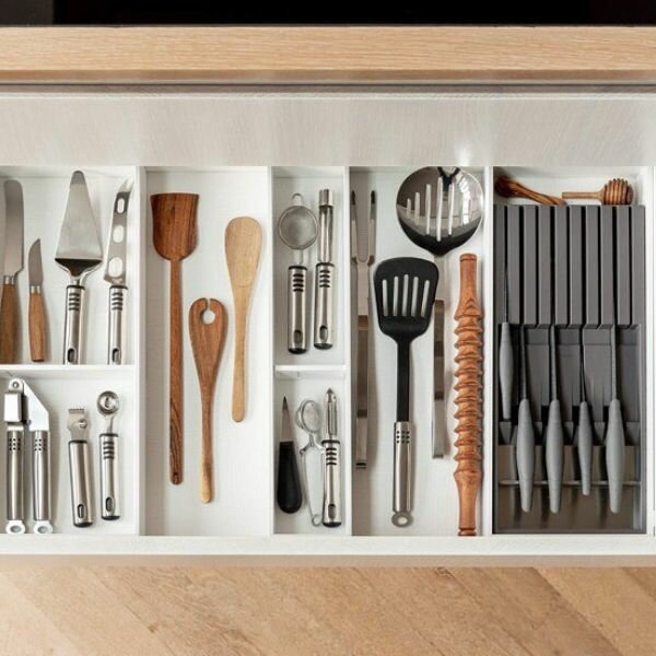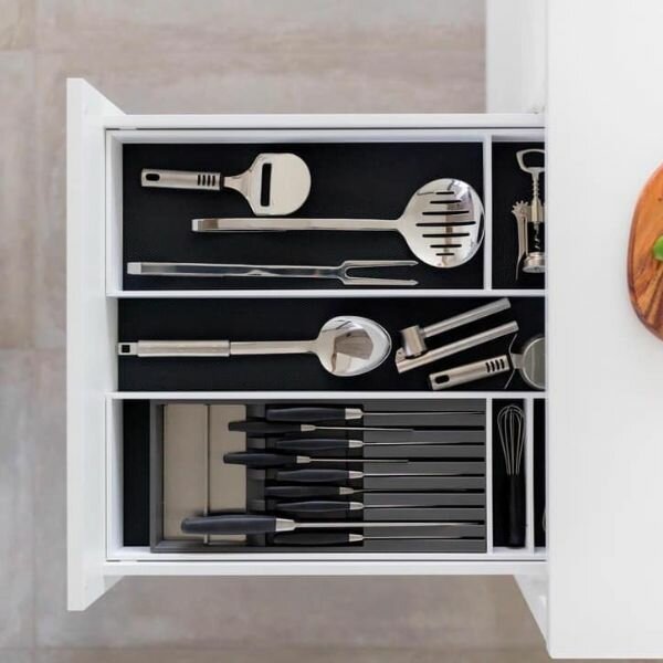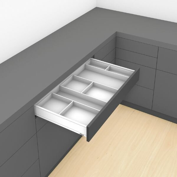 Steel Steffi lade-indeling voor Blum lades, kleur wit.