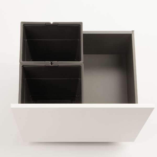 De afvalemmers uit de serie eins2vier van Ninka, zijn verkrijgbaar in diverse maten, hiermee kunt u zelf de beste indeling in uw lade