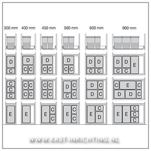 maken. Zie bijgaande afbeelding voor de schematisch weergegeven mogelijkheden per ladebreedte.