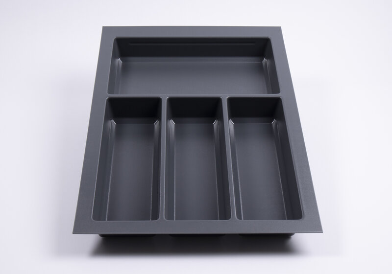 De bestekbak is uitgevoerd in de kleur antraciet. De bestekbak is geschikt voor een binnenmaat van de lade van 315 - 350 mm breed.