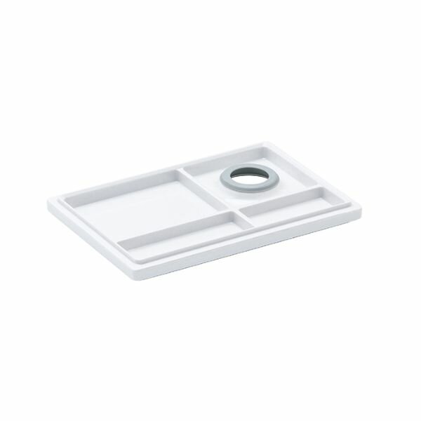 Deksel ter behoeven van de cubimax bakjes met dieptemaat 100mm.De deksels zijn in twee verschillende kleuren leverbaar. De deksels zijn van kunststof en deze versie heeft 4 vakjes en een grijpring om de deksel te openen.