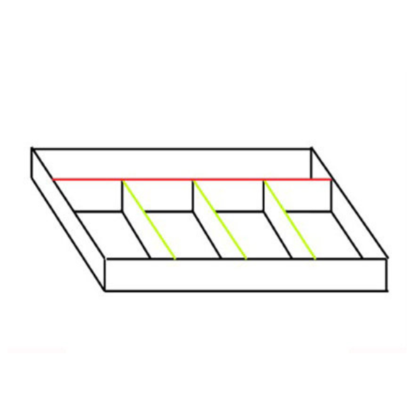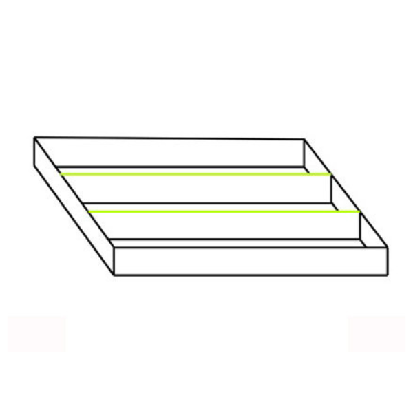 Stuur een simpele schets met de binnenmaat van uw lade en de gewenste vakverdeling naar info@lade-indeling.nl